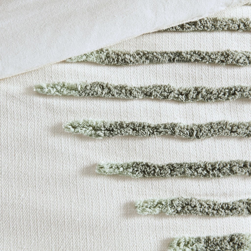 Features a modern tufted chenille design on a textured fabric for an eye-catching look