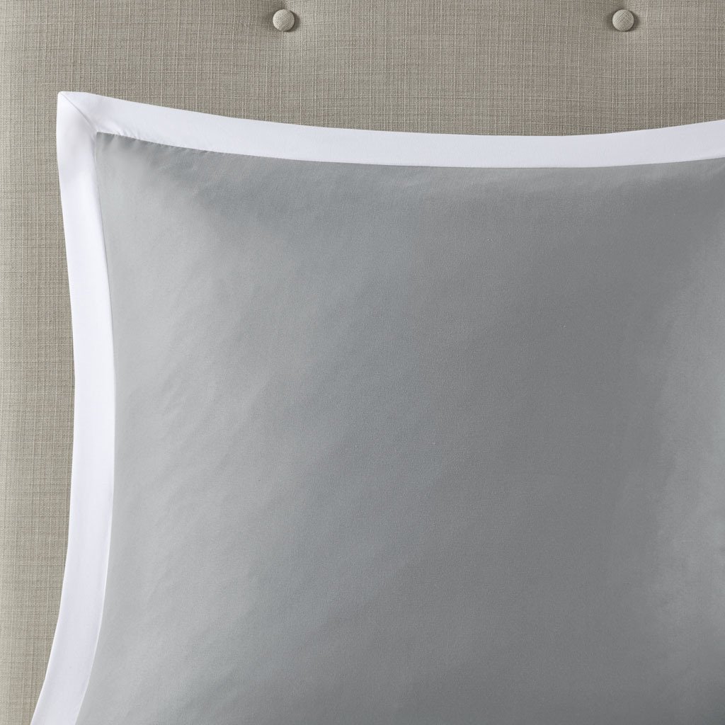 Description510 Design presents the Powell 8 Piece Embroidered Comforter Set to elevate your bedroom decor. This hotel style white comforter features an embroidered and pieced border for a sophisticated and elegant design that easily coordinates with your space. The matching pillow shams also flaunt beautiful embroidery details, while the grey Euro shams are accented with graceful white flanges to complete the transitional look. A solid grey bedskirt and 2 decorative pillows with embroidered details add the finishing touches to this hotel style bedding set. Hypoallergenic polyester filling in the comforter and pillows contains no allergens and is treated to be dustproof. Machine washable for easy care, this embroidered comforter set may come in rolled or compressed packing and will need to be fluffed up. Use a steam iron to help remove wrinkles easier.Product DetailsKing1 Comforter:104"W x 92"L2 King Shams:20"W x 36"L (2)1 Bedskirt:78"W x 80"L +15"D1 Decorative Pillow:12"W x 16"L1 Decorative Pillow:18"W x 18"L2 Euro Shams:26"W x 26"L (2)MaterialComforter and shams: 100% polyester microfiber, pieced with embroidered face and microfiber reverse, 6 oz/sq yard polyester filling Bedskirt: 100% polyester microfiber drop, non-woven platformPillow: 100% polyester microfiber cover, 100% polyester filling, Euro sham: 100% polyester microfiber