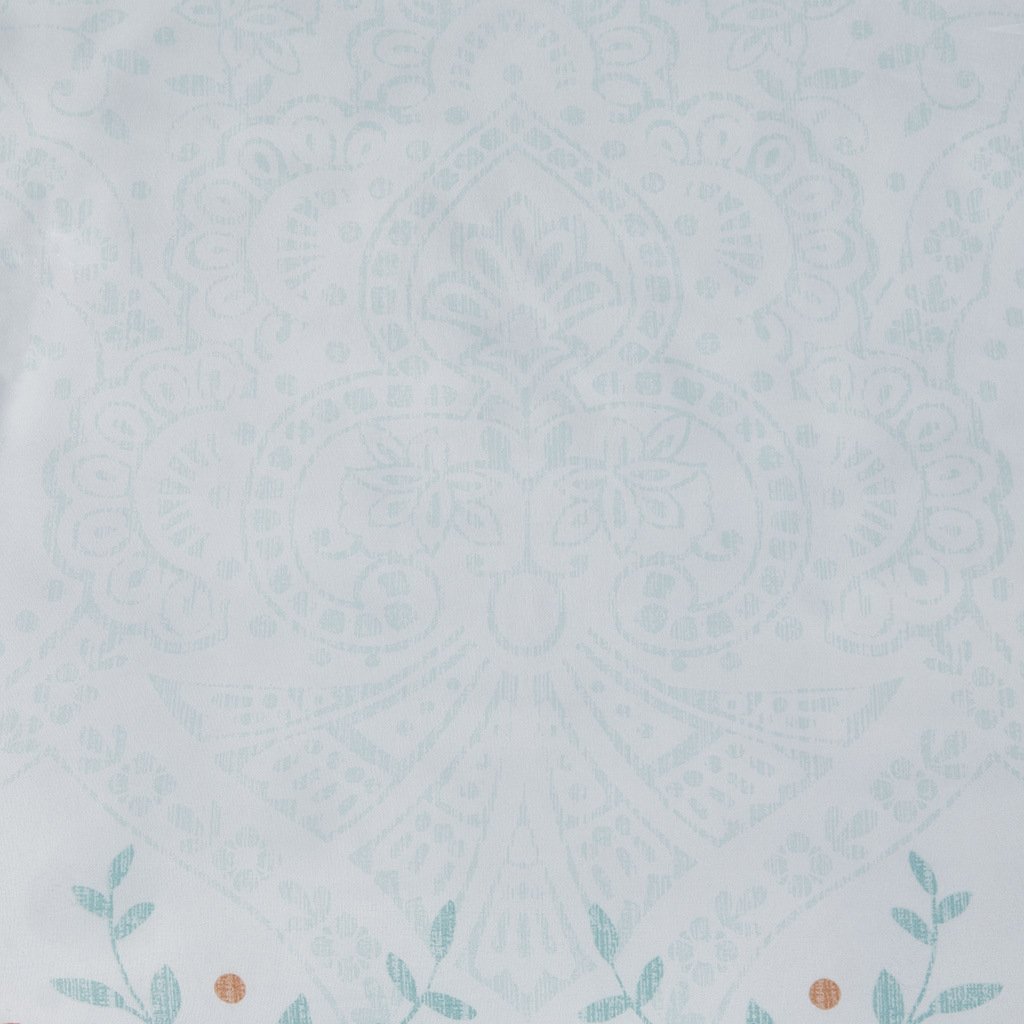 DescriptionThe Intelligent Design Vinnie Boho Comforter Set with Bed Sheets offers a fun and fashionable update your bedroom. Flaunting a vibrant aqua and orange globally inspired pattern, the comforter has a solid aqua reverse that complements the top of the bed. Matching aqua shams (1 in Twin/TwinXL) with pintucked details add texture and dimension, while a coordinating decorative pillow provides the finishing touch. A complete sheet set with a floral print is also included. This bedding set is OEKO-TEX certified, meaning it does not contain any harmful substances or chemicals, and uses an antimicrobial treatment that provides built-in freshness protection, reducing the growth of odor causing bacteria to keep fabric lasting longer.Product DetailsFull1 Comforter:78"W x 86"L2 Standard Shams:20"W x 26"L (2)1 Decorative Pillow:12"W x 16"L1 Flat Sheet:81"W x 96"L1 Fitted Sheet:54"W x 75"L + 12"D2 Standard Pillowcases:20"W x 30"L (2)MaterialComforter / Sham: Face: 100% polyester brushed microfiber, printed; Back: 100% polyester brushed solid microfiber; Filling: 100% polyester 5oz/sq yd; Flat sheet / Fitted sheet: 100% polyester brushed microfiber, printed; Pillow: polyester cover and polyester filling