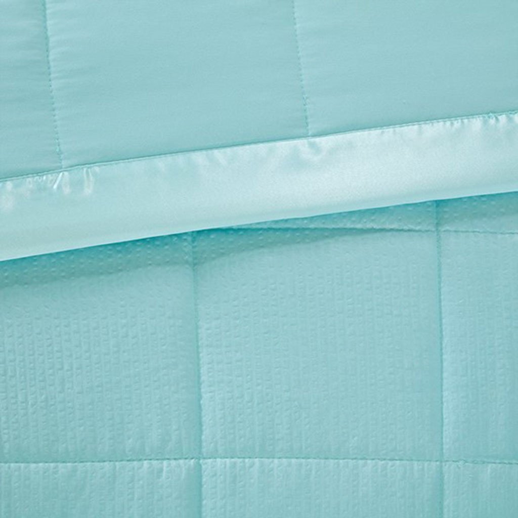 DescriptionMake every night a cozy one with this textured oversized down alternative blanket. The color-matched 3" satin trim adds a luxury element that feels great on your skin. It features a 3M Scotchgard Moisture Management Treatment that wicks away moisture while helping release stains. Machine washable for easy care with a classic box quilting design. This hypoallergenic blanket is also OEKO-TEX certified, meaning it does not contain any harmful substances or chemicals, ensuring quality comfort and wellness.Product DetailsKing1 Blanket:108x96"MaterialFace: solid embossed micro fiber with 3M Scotchgard repel & release treatment, 100% polyesterReverse: solid micro fiber with 3M Scotchgard repel & release treatment, 100% polyester 3" binding: 100% polyester satinFilling: 100% polyester brushed fiber, end to end box quilting