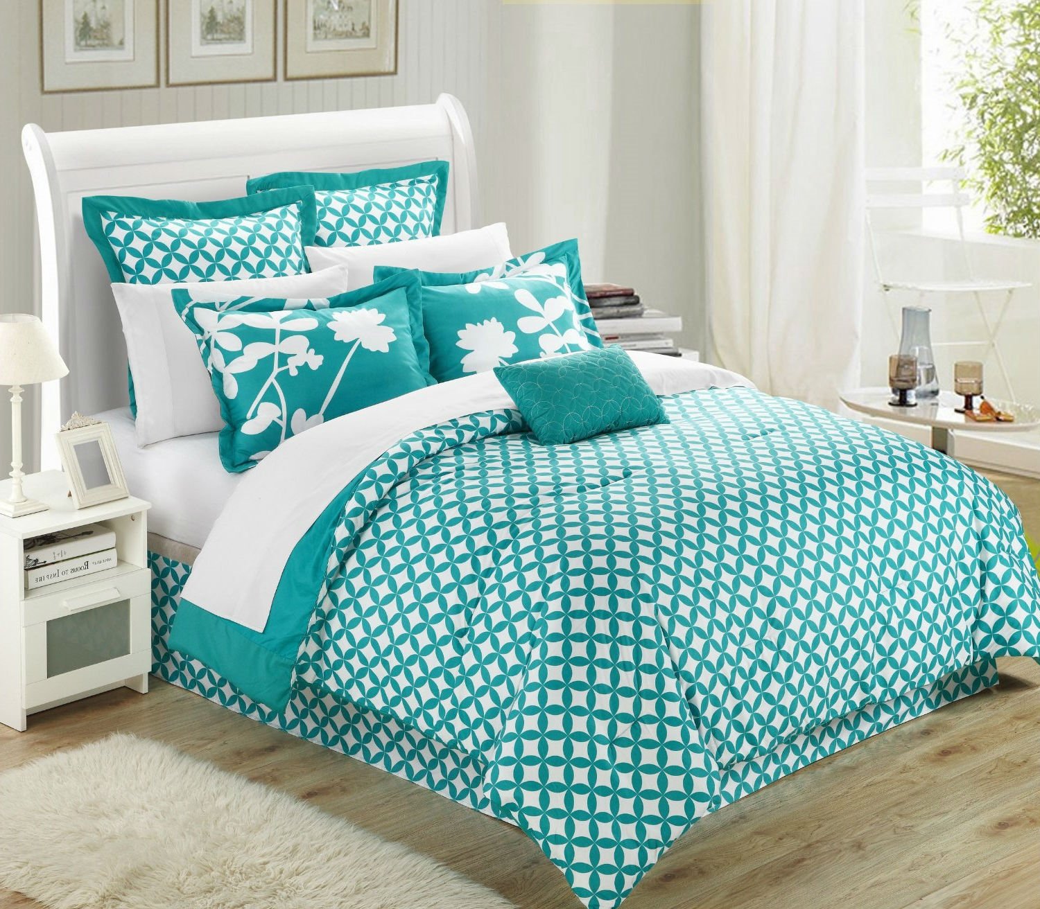 Queen size Turquoise 7-Piece Floral Bed in a Bag Comforter Set Queen size Turquoise 7-Piece Floral Bed in a Bag Comforter Set