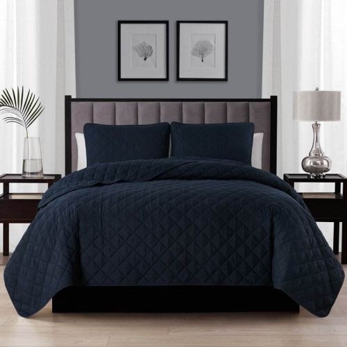 Twin/Twin XL 2-Piece Navy Blue Polyester Microfiber Reversible Diamond Quilt Set Twin/Twin XL 2-Piece Navy Blue Polyester Microfiber Reversible Diamond Quilt Set Twin/Twin XL 2-Piece Navy Blue Polyester Microfiber Reversible Diamond Quilt Set
